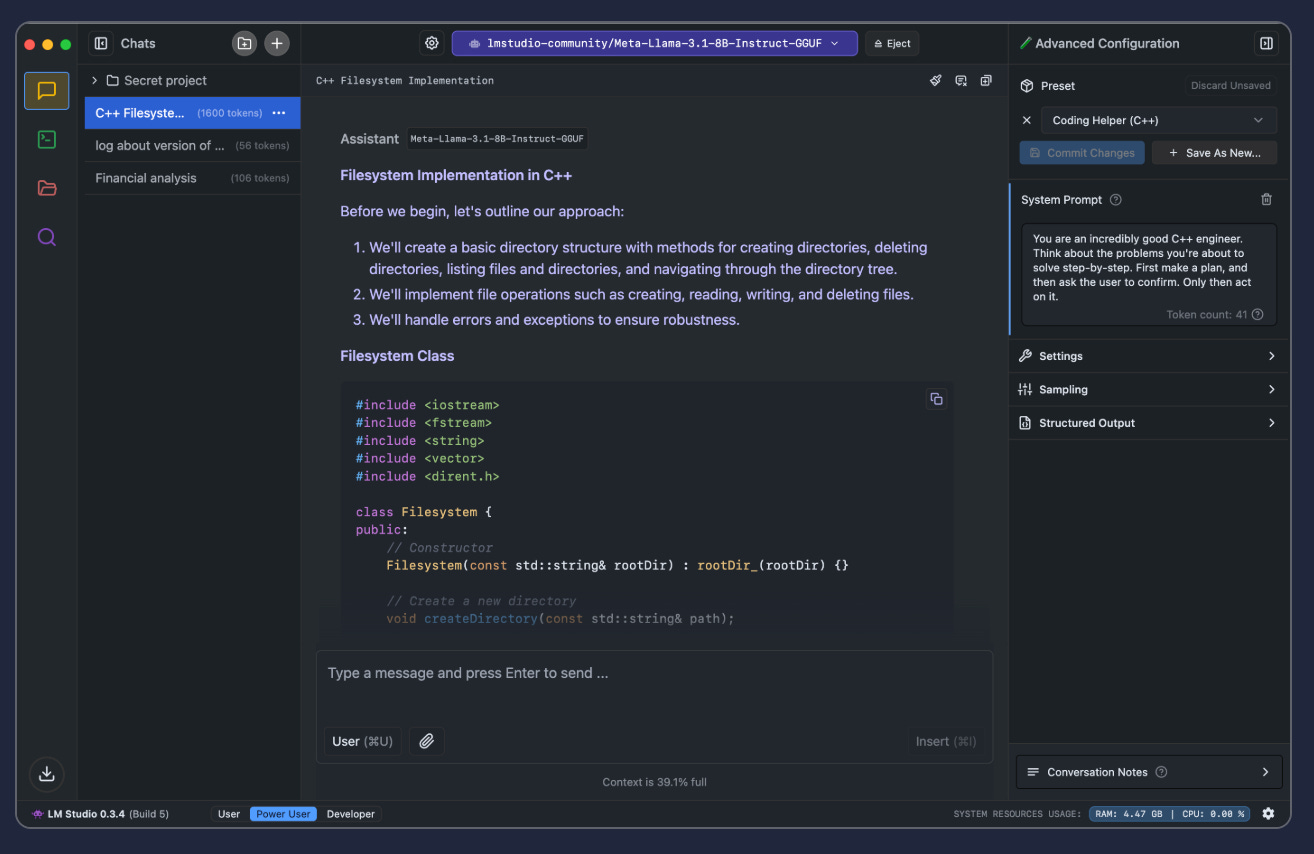 LM Studio offre un'interfaccia più sofisticata e funzionalità avanzate che lo rendono particolarmente interessante per gli sviluppatori. Tra i punti di forza troviamo: