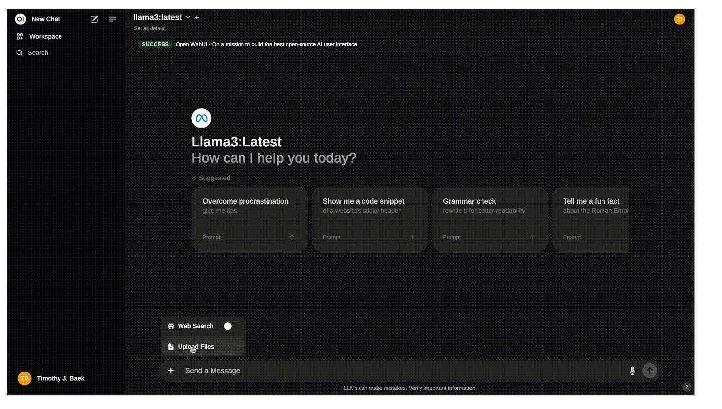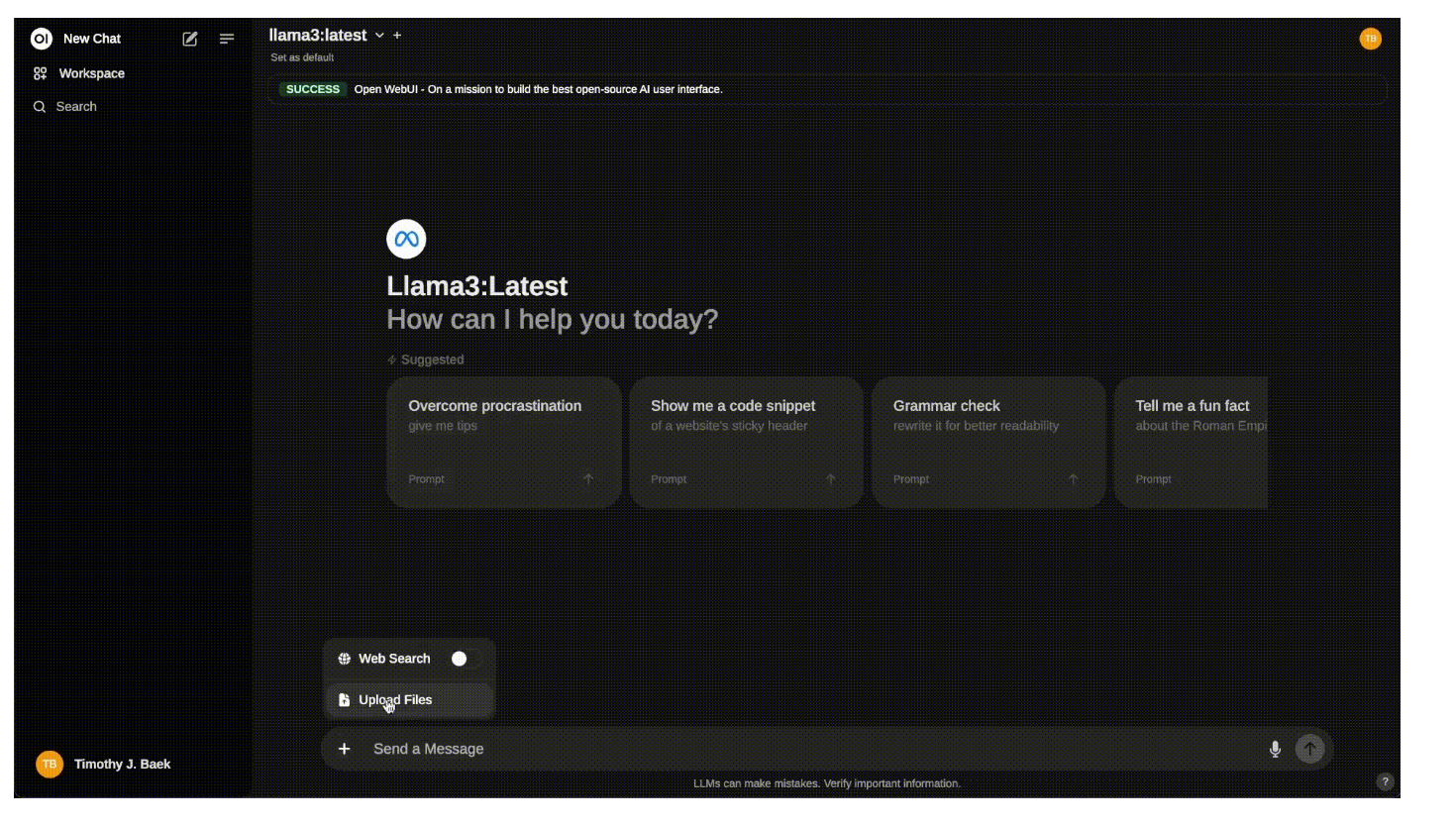 Se hai installato Ollama correttamente, attraverso questo semplice comando Docker troverai l’interfaccia di Web UI pronta ad essere utilizzata:
